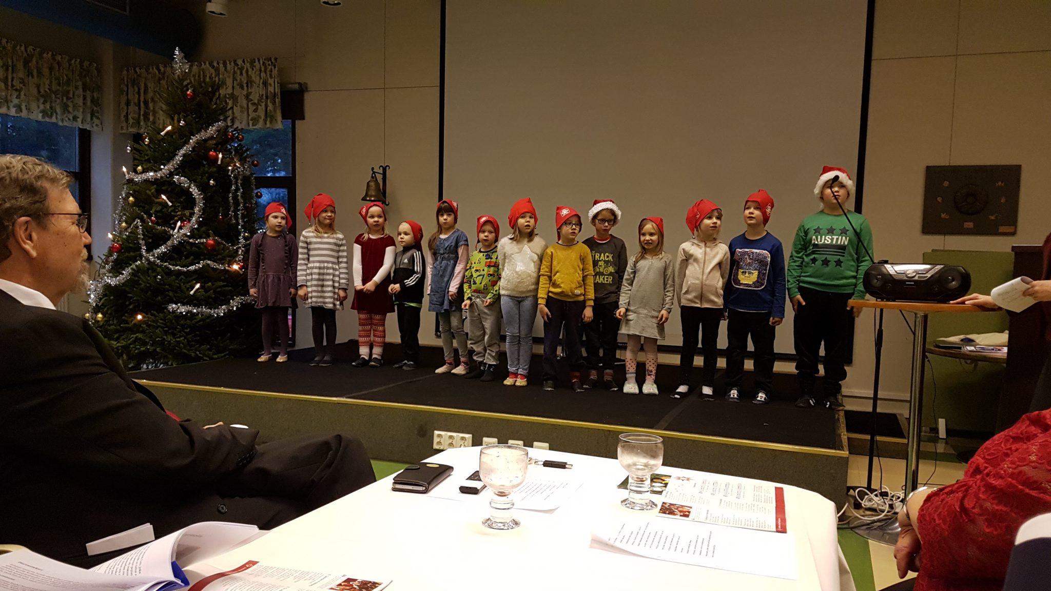 - Päiväkotilapset esiintyivät reippaasti joulujuhlassamme.