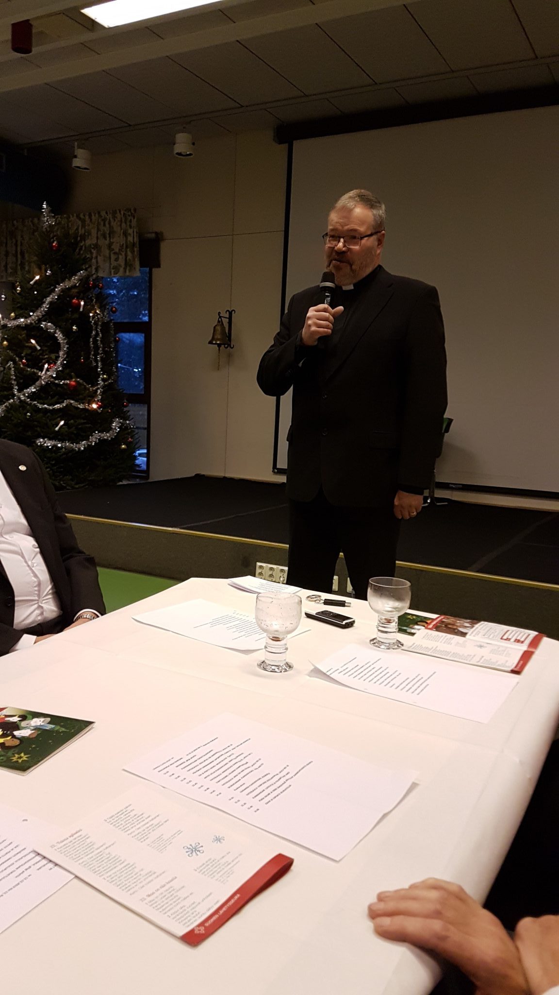 - Kirkkoherra Kari Aalto toi seurakunnan terveiset.